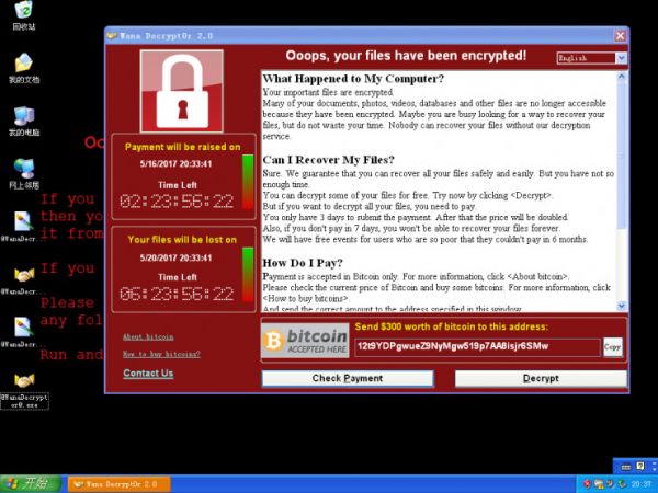 (图:WannaCry勒索界面)